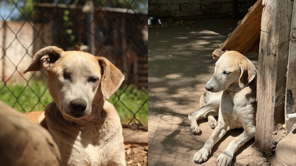 Mientras otros perros del refugio encuentran hogar, Bombón sigue ahí. Pasa el tiempo, llegan nuevos rescatados, se van los adoptados… y ella permanece, viendo cómo todos parten menos ella.