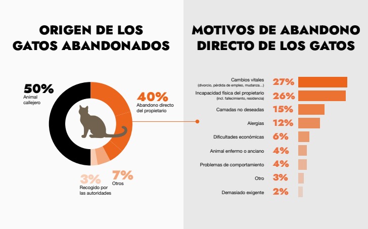 En la mayoría de los casos, se trata de gatos, que representan el 77% de los animales abandonados.